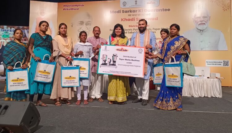 Bhubaneswar, Odisha – March 4th, 2024:Shri Manoj Kumar, Chairman,Khadi and Village Industries Commission (KVIC), spearheaded a significant initiative today in Bhubaneswar, Odisha, under Honey Mission and GramodyogVikasYojana. On this occasion he distributedbeeboxes, electric potters’ wheels, paper machines, and Sabai Grass Ban making tools, with an aim toreinforcement in skill by Machineries & toolkits supportto the artisansand foster traditional industries.